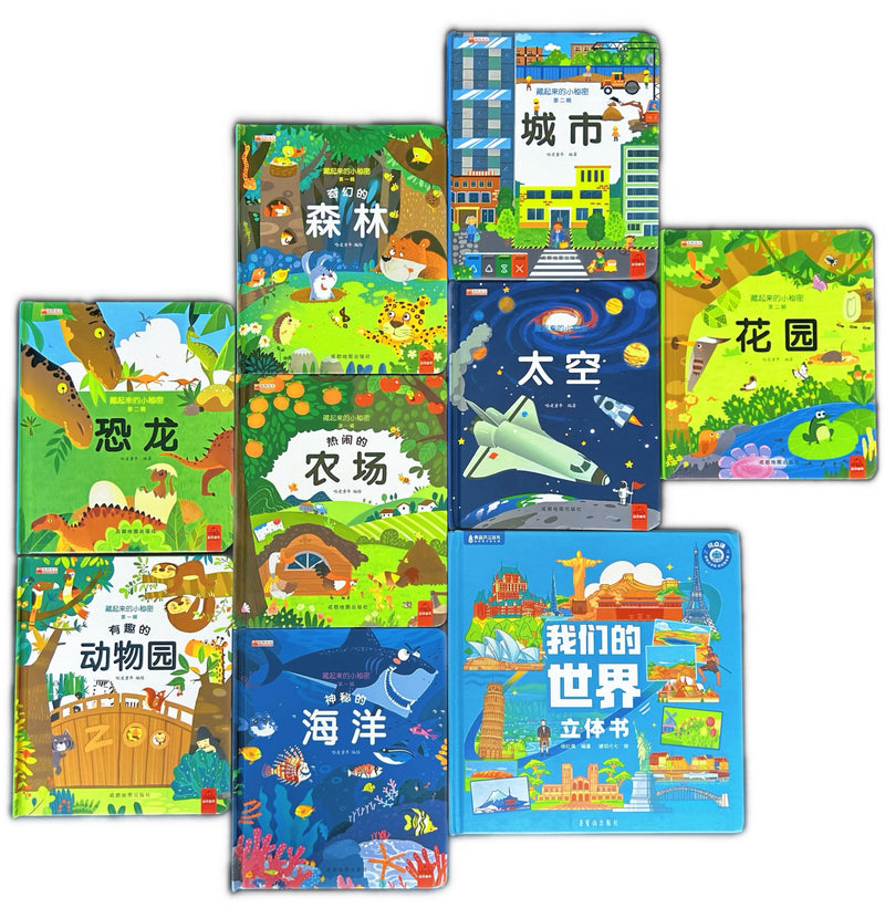that into childrenâs natural curiosity and transport them into new worlds. Themes include: dinosaur, zoo, ocean, farm, forest, city, space, and garden - One Our Worldâ 3D board book that takes children on a journey around the globe and introduces them to landmarks such as the Taj Mahal and Colosseum in stunning 3D art